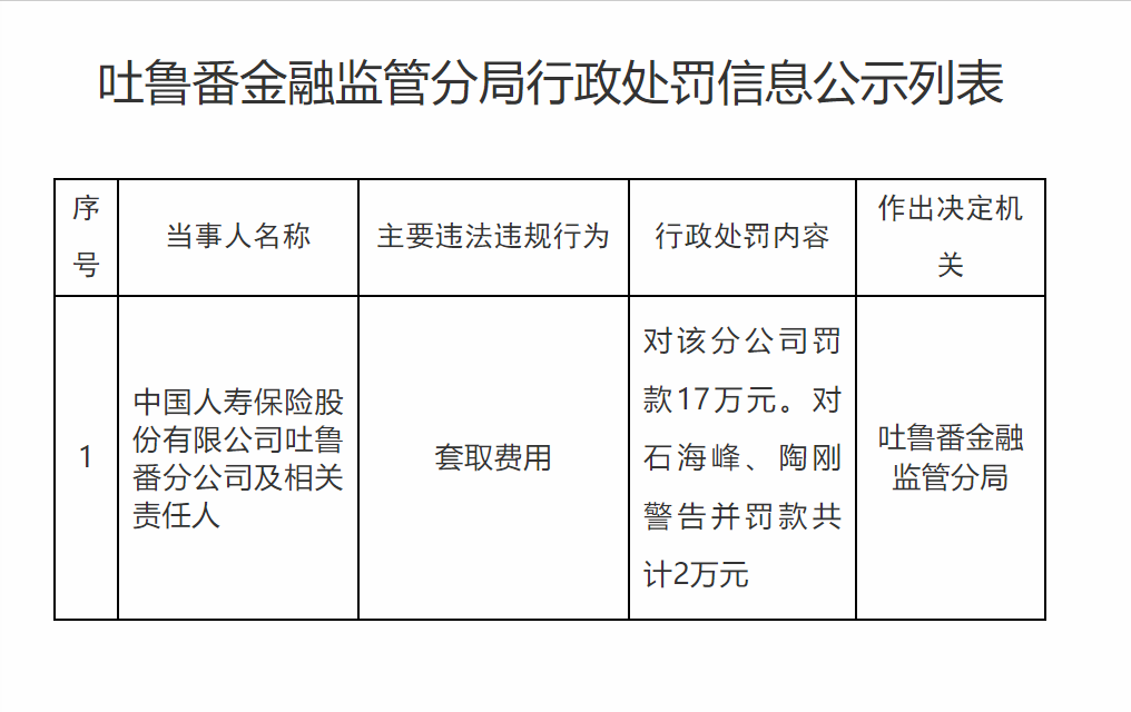 每日更新中国人寿保险部门被罚款170,000元来进行基本基金费用 由bat365在线平台官网打开2025年7月29日2025年7月29日对“中国人寿保险部门被罚款170,000元来进行基本基金费用”作出评论 7月23日,在中国人寿保险公司有限公司(Life Insurance Co.,Ltd)提供了Turpan金融监督部门的行政罚款清单。Turpan国家的分支机构因挪用利率而被罚款170,000元人民币。相关董事什(Shi Hai Feng)和陶伙(Tao Gang)被警告和罚款,总共有20,000元人民币。