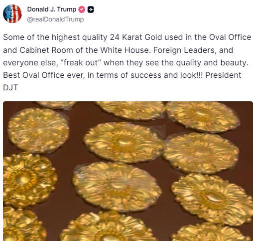 9月29日,中国新闻社。根据《纽约邮报》的说法,美国总统特朗普在当地的28届纽约邮报展示了装饰椭圆形的社交网络办公室的最后一颗黄金珠宝,声称外国领导人在看到它后“令人惊讶”。图像来源:特朗普总统在特朗普社交网络上出版的屏幕截图写道:他还说:“这是历史上最好的椭圆形办公室!”该报告说,特朗普还附上了将近40秒的视频,其中显示了一系列在白宫建立并准备被悬挂的金墙装饰。一些美国人对特朗普的行动表示不满。一些美国互联网用户对社交网络发表了评论。 “看起来很佩格霍索。”有些人抱怨人们买不起食物,农民需要帮助。一些美国互联网用户说他们看起来很baD和许多美国人说他们在战斗。
